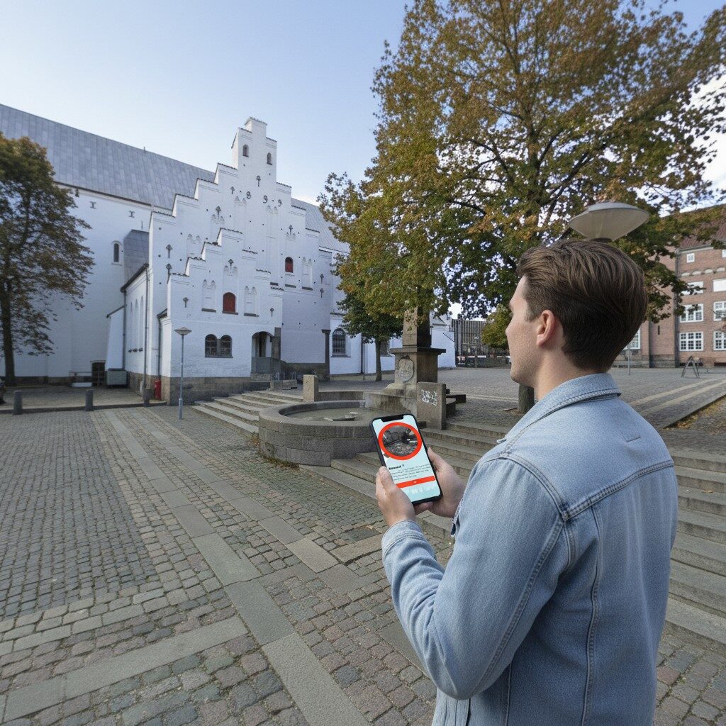 After booking, you’ll receive an email with your play link and simple start instructions. On the day you want to play, just head to the start location at Aalborg, Budolfi Church, open the link on your smartphone and begin the game. From there, you simply follow the GPS route, complete the challenges and explore at your own pace.