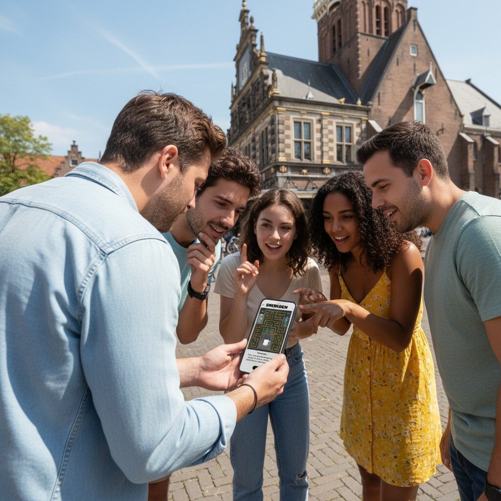 Step into the world of Sherlock Holmes with this self-guided, story-driven murder mystery City Game set in the historic city centre of Alkmaar. The city becomes the backdrop for a gripping detective investigation as you follow the trail of a murder committed during the chaotic Liberty Festival. Move at your own pace while gathering clues, solving puzzles and interrogating digital suspects, all as part of an unfolding narrative that challenges your deductive skills and immerses you in the heart of a mysterious case.