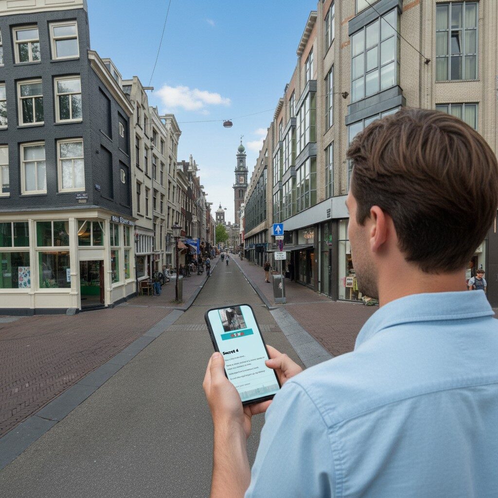 After booking, you’ll receive an email with your play link and simple start instructions. On the day you want to play, just head to the start location at Oudezijds Voorburgwal 88, 1012 GG Amsterdam, Netherlands, open the link on your smartphone and begin the game. From there, you simply follow the GPS route, complete the challenges and explore at your own pace.