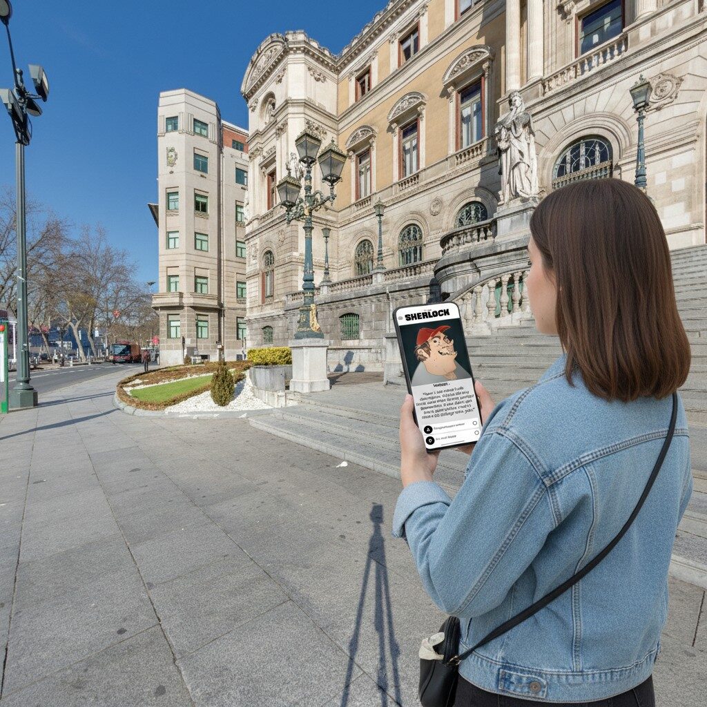 Enter the world of Sherlock Holmes in the city centre of Bilbao, where this self-guided, story-driven murder mystery City Game unfolds. Let the city streets become your detective playground, as the immersive setting for an investigation into a murder that occurred during the Liberty Festival. Truly become part of the narrative as you move through the city, gathering clues, solving puzzles, and interrogating digital suspects, all the while playing at a pace that suits you. Embrace the liberty of exploring the depth of your detective skills in the engaging milieu that is the Sherlock Holmes’ City Game.