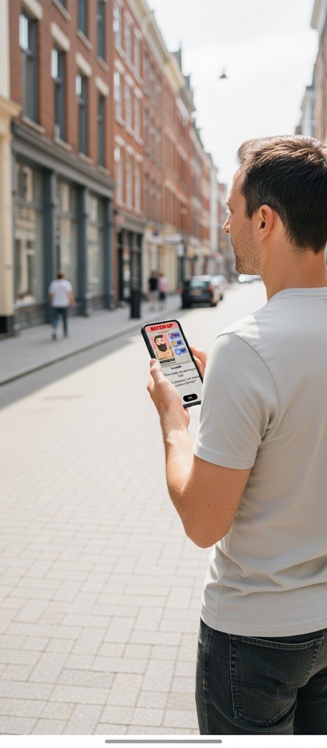 After booking, you will receive an email with your login details and simple instructions to begin the game. On the day you want to play, just head to the start location at Stationsplein, log in on your smartphone and begin your investigation. From there, the story unfolds as you move through the city, solve puzzles and follow the clues at your own pace.