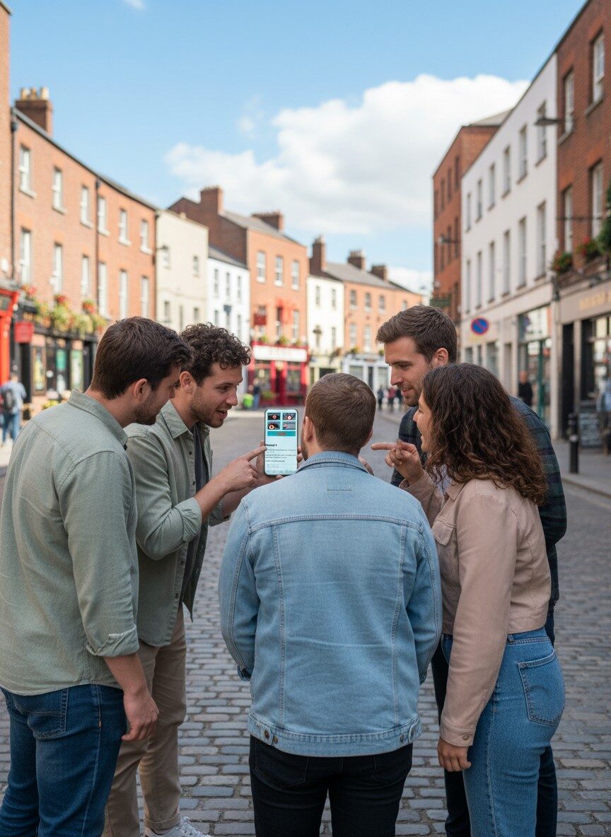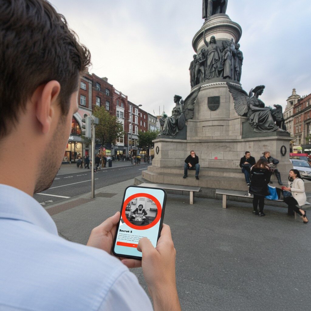 After booking, you’ll receive an email with your play link and simple start instructions. On the day you want to play, just head to the start location at Dublin, College Park, open the link on your smartphone and begin the game. From there, you simply follow the GPS route, complete the challenges and explore at your own pace.