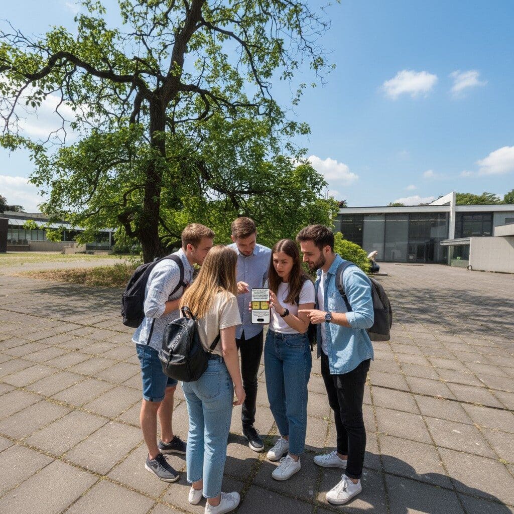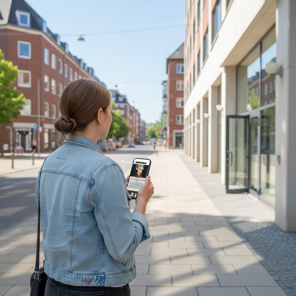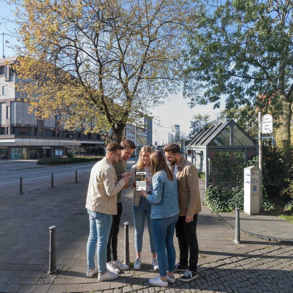 After booking, you will receive an email with your login details and simple instructions to begin the game. On the day you want to play, just head to the start location at Duisburg, Rathaus , log in on your smartphone and begin your investigation. From there, the story unfolds as you move through the city, solve puzzles and follow the clues at your own pace.