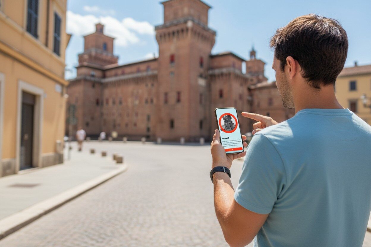 After booking, you’ll receive an email with your play link and simple start instructions. On the day you want to play, just head to the start location at Ferrara, Cattedrale di San Giorgio (Portal), open the link on your smartphone and begin the game. From there, you simply follow the GPS route, complete the challenges and explore at your own pace.
