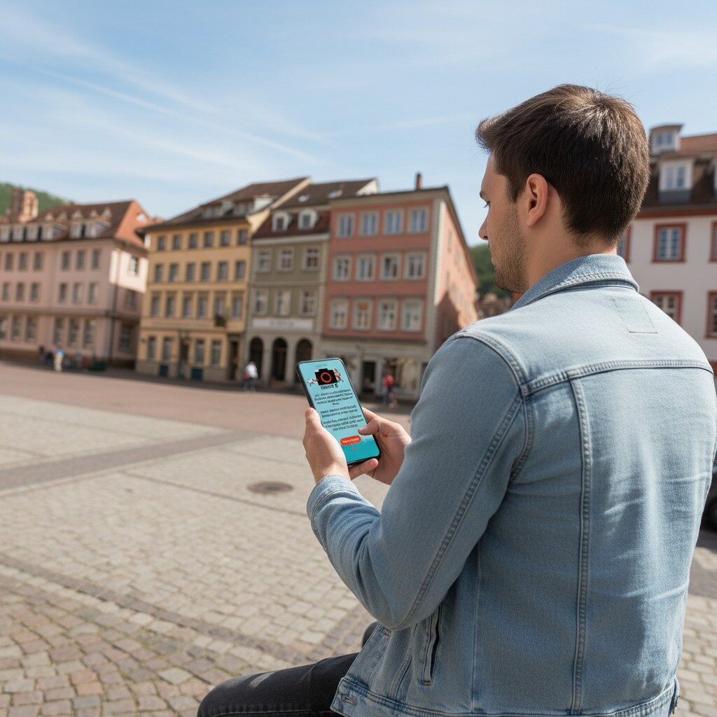 After booking, you’ll receive an email with your play link and simple start instructions. On the day you want to play, just head to the start location at Heidelberg, Universitätsplatz, open the link on your smartphone and begin the game. From there, you simply follow the GPS route, complete the challenges and explore at your own pace.