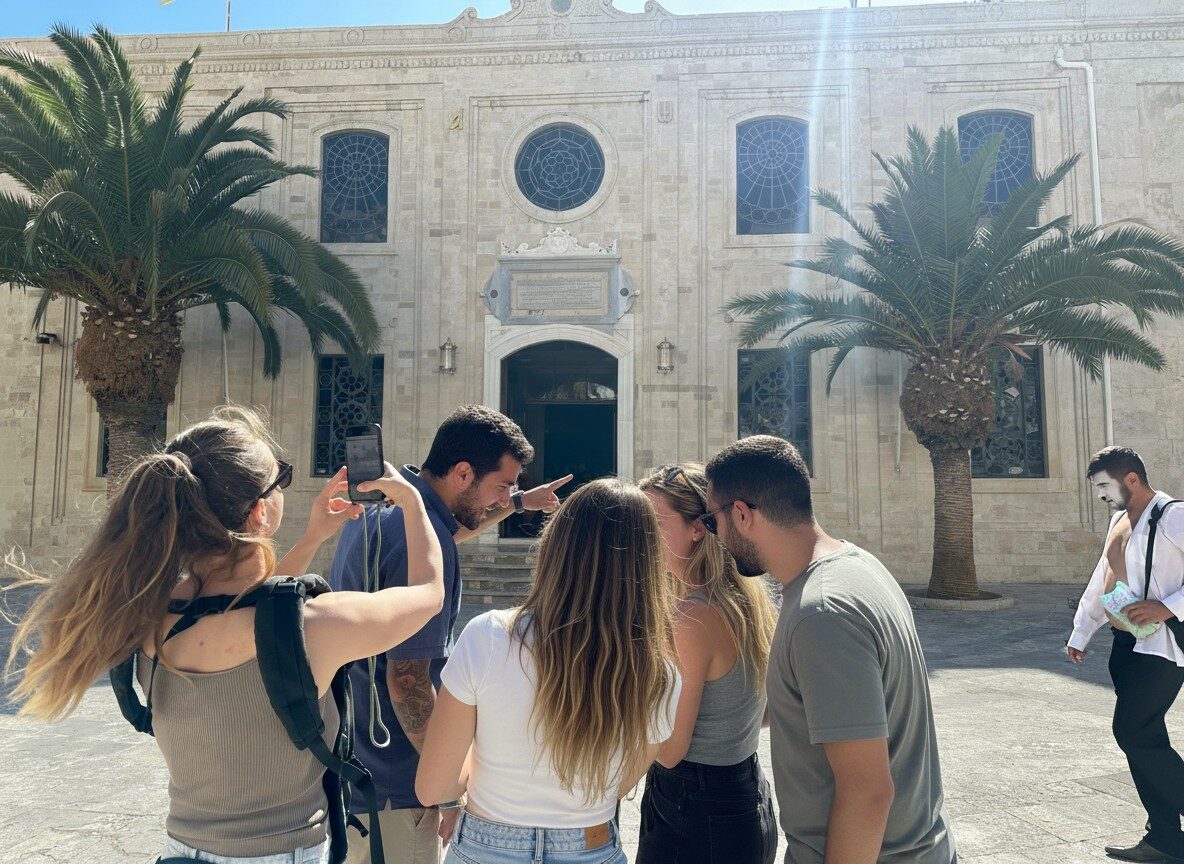 As you explore Heraklion through this City Game, you’ll uncover both the familiar sights and the quiet corners of the city, all while following an immersive storyline. The route leads you past iconic landmarks like the seaside Koules Fortress and the elegant arcades of the Loggia, as well as the daily rhythm of Heraklion Old Town. Along the way, you’ll encounter the refreshing charm of the Lion Fountain and the peaceful presence of Saint Minas Cathedral. This experience invites you to see not only the major highlights but also the character of Heraklion that lives in its streets, squares and unexpected details.