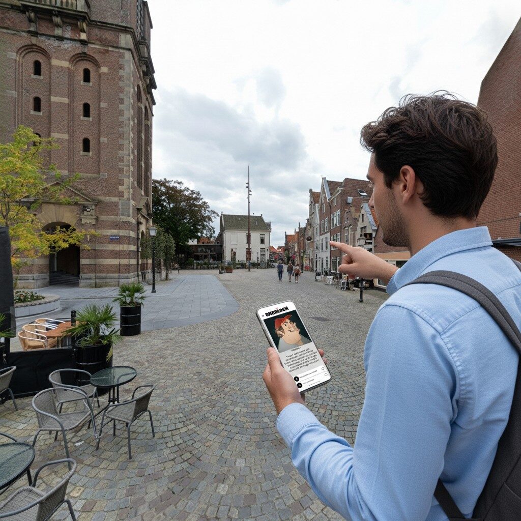 Step into the world of Sherlock Holmes with this self-guided, story-driven murder mystery City Game set in the historic city centre of Hoorn. As you navigate the charming streets, the city becomes the backdrop for an immersive detective investigation into a killing that took place during the Liberty Festival. Following an unfolding narrative at your own pace, you’ll gather clues, solve cryptic puzzles and interrogate digital suspects to uncover the truth behind the crime.