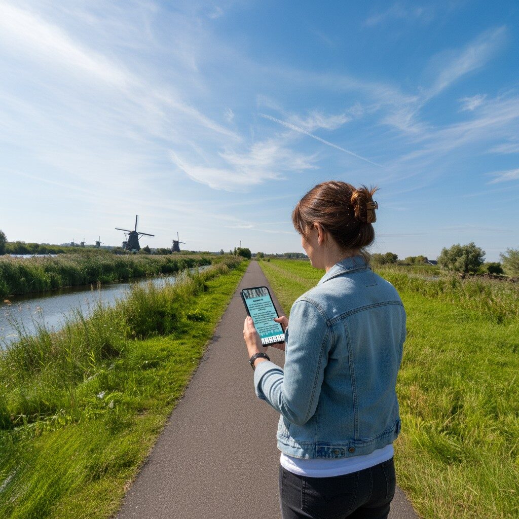 After booking, you’ll receive an email with your play link and simple start instructions. On the day you want to play, just head to the start location at Kinderdijk, Molenstraat, open the link on your smartphone and begin the game. From there, you simply follow the GPS route, complete the challenges and explore at your own pace.