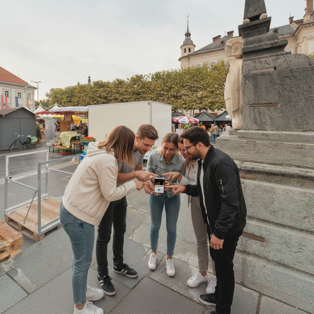 After booking, you will receive an email with your login details and simple instructions to begin the game. On the day you want to play, just head to the start location at Klagenfurt, Lindwurmbrunnen, log in on your smartphone and begin your investigation. From there, the story unfolds as you move through the city, solve puzzles and follow the clues at your own pace.
