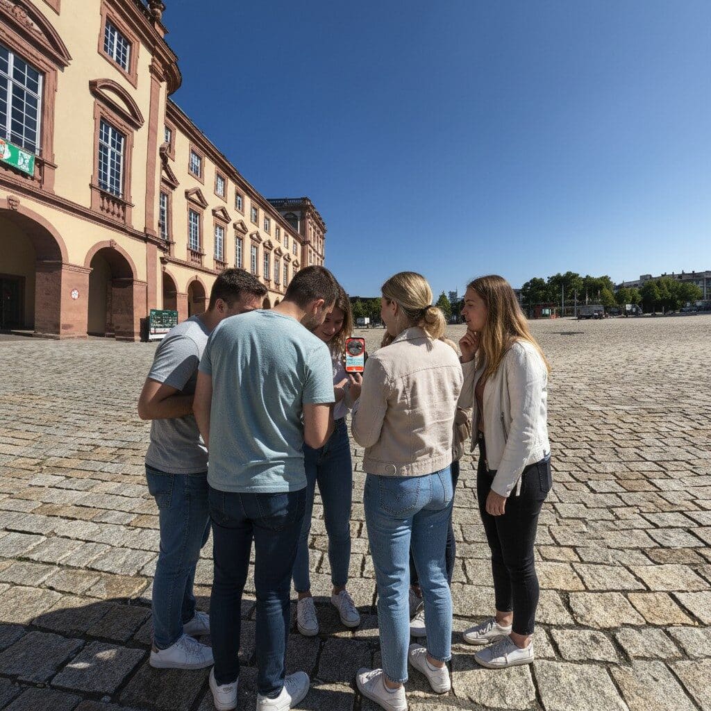 After booking, you’ll receive an email with your play link and simple start instructions. On the day you want to play, just head to the start location at Mannheim, Paradeplatz, open the link on your smartphone and begin the game. From there, you simply follow the GPS route, complete the challenges and explore at your own pace.