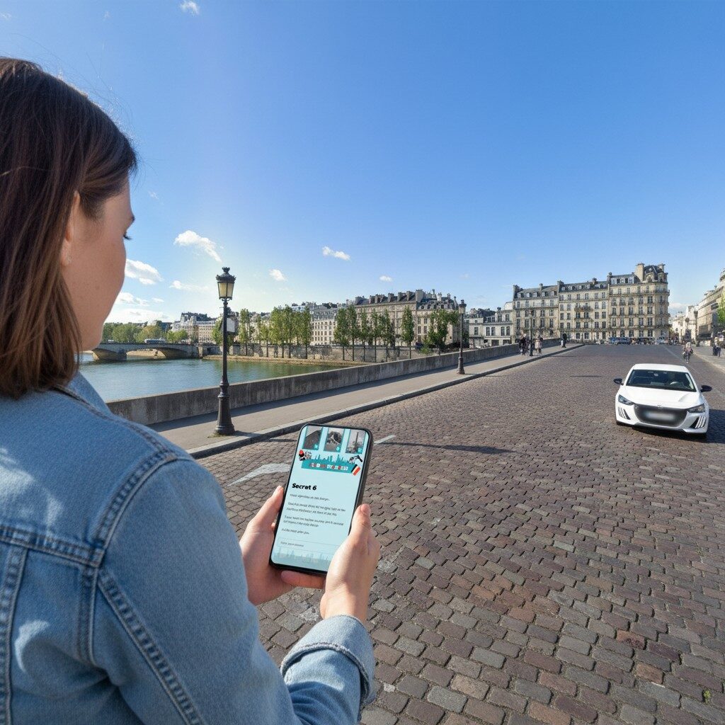 After booking, you’ll receive an email with your play link and simple start instructions. On the day you want to play, just head to the start location at Paris, Porte des Lions, open the link on your smartphone and begin the game. From there, you simply follow the GPS route, complete the challenges and explore at your own pace.