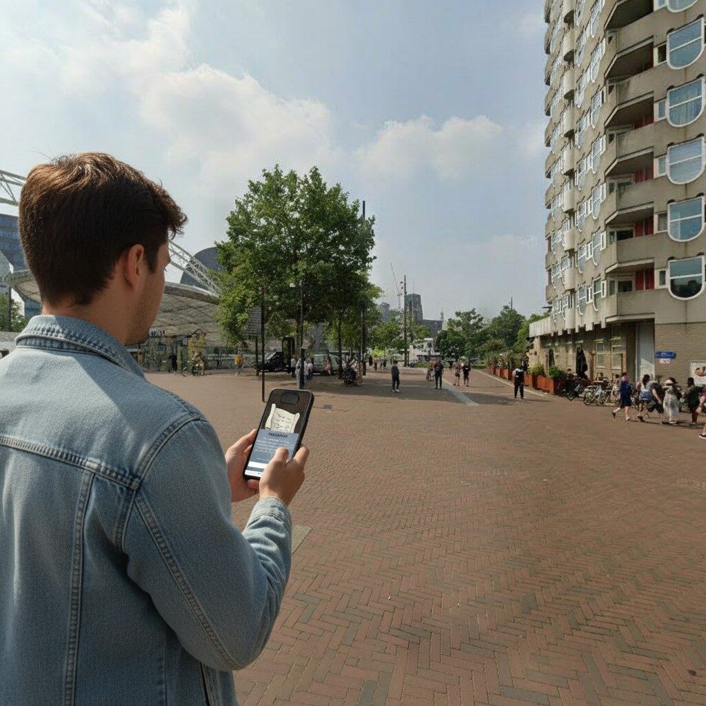 After booking, you will receive an email with your login details and simple instructions to begin the game. On the day you want to play, just head to the start location at Rotterdam, Markthal, log in on your smartphone and begin your investigation. From there, the story unfolds as you move through the city, solve puzzles and follow the clues at your own pace.