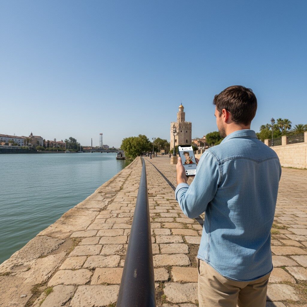 After booking, you will receive an email with your login details and simple instructions to begin the game. On the day you want to play, just head to the start location at Seville, Plaza de Triunfo, log in on your smartphone and begin your investigation. From there, the story unfolds as you move through the city, solve puzzles and follow the clues at your own pace.