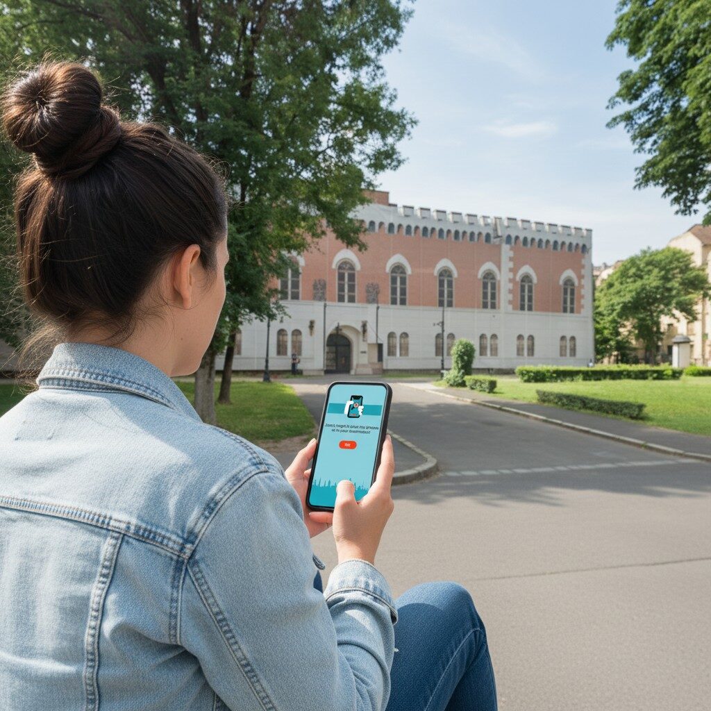 After booking, you’ll receive an email with your play link and simple start instructions. On the day you want to play, just head to the start location at Timisoara, Teatrul Național Sala 2, open the link on your smartphone and begin the game. From there, you simply follow the GPS route, complete the challenges and explore at your own pace.
