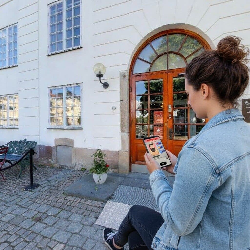 After booking, you will receive an email with your login details and simple instructions to begin the game. On the day you want to play, just head to the start location at Uppsala, Stadshuset, log in on your smartphone and begin your investigation. From there, the story unfolds as you move through the city, solve puzzles and follow the clues at your own pace.