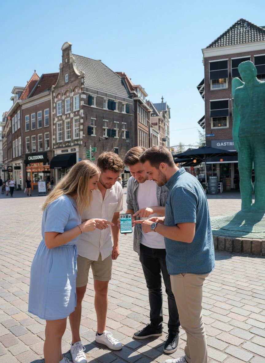 After booking, you’ll receive an email with your play link and simple start instructions. On the day you want to play, just head to the start location at Zwolle, Grote Kerkplein, open the link on your smartphone and begin the game. From there, you simply follow the GPS route, complete the challenges and explore at your own pace.